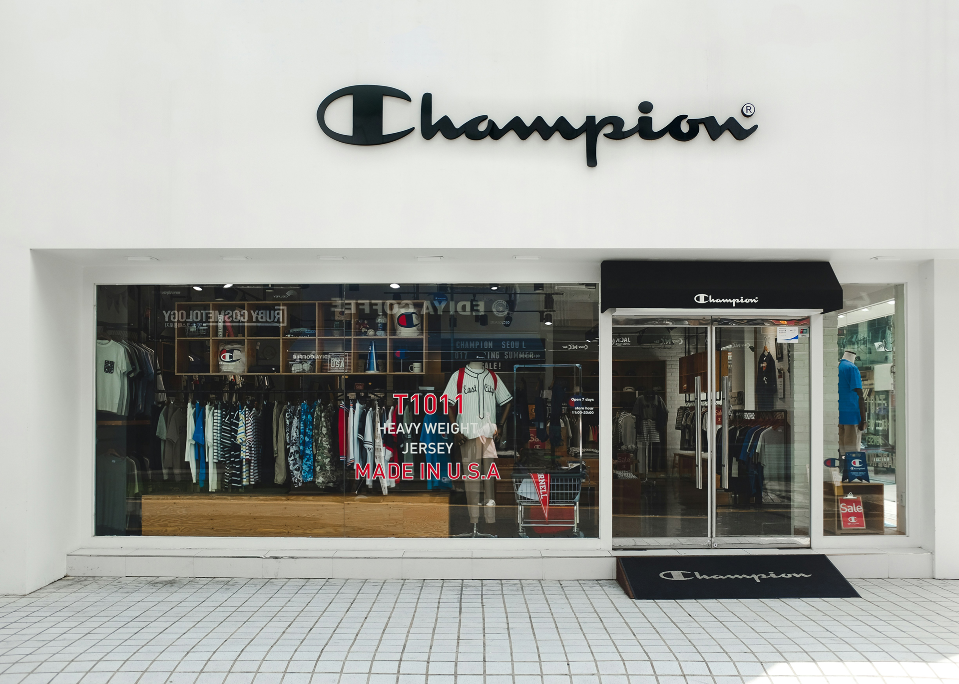 Champion® & streetwear apparel – tees, jerseys, shorts, jackets — all authentic, sorted by size.